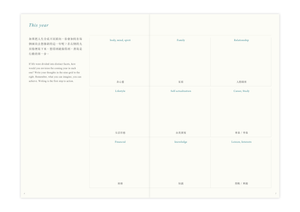 如果把人生分成不同面向,我們會如何去想像新的一年呢?延續去年別冊以及電子手帳裡受到好評的年度規劃,這次直接放進手帳本裡,在一年初始之際有意識地去開展。