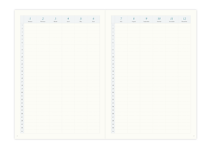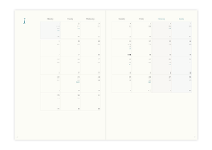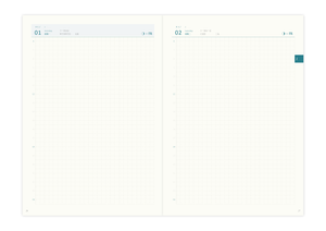 側邊大量留白的月計畫表,帶來更多自由揮灑的空間。每天的資訊靠右對齊,讓書寫更加直覺。