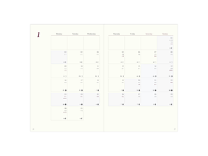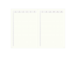 側邊大量留白的月計畫表,帶來更多自由揮灑的空間。每天的資訊靠右對齊,讓書寫更加直覺。