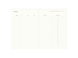 - narro diary拿掉了所有的附錄,(除了preface之外)也沒有給予任何既定格式,希望給大家更多的自由與空間︒取而代之的是在別冊中分享更多使用上的可能性,歡迎詳閱別冊。