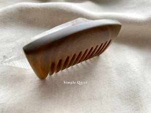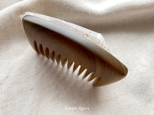 梳頭能使「頭不白」、「髮不落而生」。沒有另外上保護漆的木梳,保留了樹木靈動的氣蘊,溫和而自然的質地最能和身體髮膚互相共鳴。