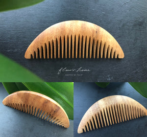 手工木梳難能可貴的是它一體成形,每個轉折處的溫潤如玉,讓手掌與握柄每一次的接觸都像是一種溫柔安撫。而木材特有的靈氣,以及師傅取材的好眼光,讓每一柄梳子的風味/香氣也各異。余光中先生曾有詩云:「且留清香在絕頂」,便是在稱讚這手工木梳。