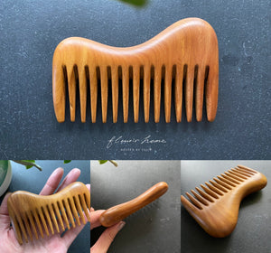 以梳型可以分為有柄梳和無柄梳兩大類。有柄梳的握柄最為合手,可以輕鬆掌握,也很適合以「梳齒」的部分敲打身體以緩解酸痛。但切記不可以用拍打的方式,因為木梳皆以樹木的橫切面去製作,梳齒方向與木頭的肌理平行,較為堅固耐用,但用力拍打有可能使木梳斷裂。