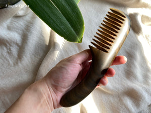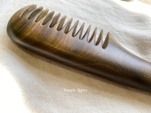 梳頭能使「頭不白」、「髮不落而生」。沒有另外上保護漆的木梳,保留了樹木靈動的氣蘊,溫和而自然的質地最能和身體髮膚互相共鳴。