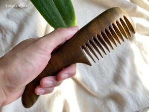 以梳型可以分為有柄梳和無柄梳兩大類。有柄梳的握柄最為合手,可以輕鬆掌握,也很適合以「梳齒」的部分敲打身體以緩解酸痛。但切記不可以用拍打的方式,因為木梳皆以樹木的橫切面去製作,梳齒方向與木頭的肌理平行,較為堅固耐用,但用力拍打有可能使木梳斷裂。