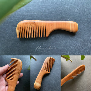 以梳型可以分為有柄梳和無柄梳兩大類。有柄梳的握柄最為合手,可以輕鬆掌握,也很適合以「梳齒」的部分敲打身體以緩解酸痛。但切記不可以用拍打的方式,因為木梳皆以樹木的橫切面去製作,梳齒方向與木頭的肌理平行,較為堅固耐用,但用力拍打有可能使木梳斷裂。