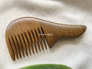 以梳型可以分為有柄梳和無柄梳兩大類。有柄梳的握柄最為合手,可以輕鬆掌握,也很適合以「梳齒」的部分敲打身體以緩解酸痛。但切記不可以用拍打的方式,因為木梳皆以樹木的橫切面去製作,梳齒方向與木頭的肌理平行,較為堅固耐用,但用力拍打有可能使木梳斷裂。