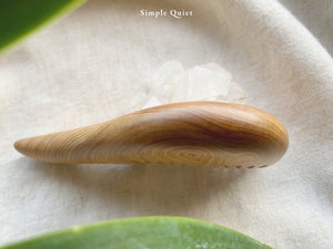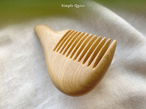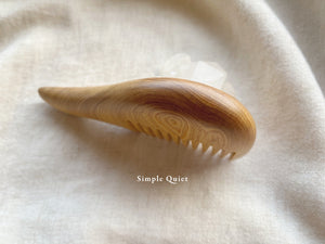 梳頭能使「頭不白」、「髮不落而生」。沒有另外上保護漆的木梳,保留了樹木靈動的氣蘊,溫和而自然的質地最能和身體髮膚互相共鳴。