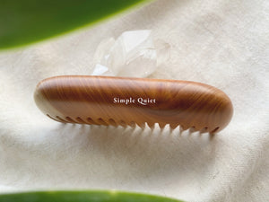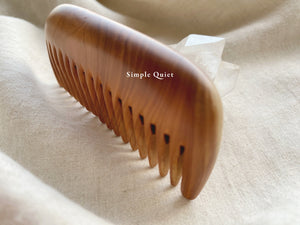 梳頭能使「頭不白」、「髮不落而生」。沒有另外上保護漆的木梳,保留了樹木靈動的氣蘊,溫和而自然的質地最能和身體髮膚互相共鳴。