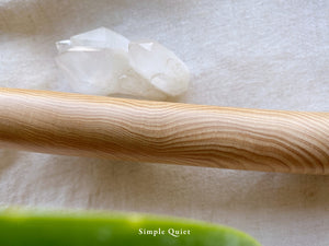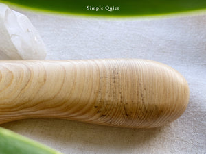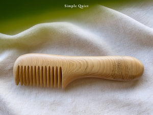 有柄梳的握柄最為合手,可以輕鬆掌握,不僅適合梳髮梳身,也很適合以「梳齒」的部分敲打身體以緩解酸痛,直柄梳圓潤的尾端可以做肌肉按摩。溫柔的握持令人安心,讓我們帶著如斯溫和的質地撫觸周身,從頭到腳,讓木梳靈動的氣蘊流灌四肢百骸。