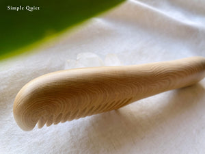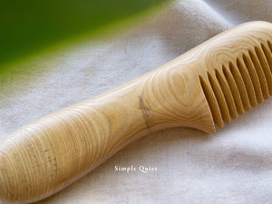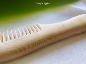 梳頭能使「頭不白」、「髮不落而生」。沒有另外上保護漆的木梳,保留了樹木靈動的氣蘊,溫和而自然的質地最能和身體髮膚互相共鳴。