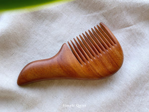以梳型可以分為有柄梳和無柄梳兩大類。有柄梳的握柄最為合手,可以輕鬆掌握,也很適合以「梳齒」的部分敲打身體以緩解酸痛。但切記不可以用拍打的方式,因為木梳皆以樹木的橫切面去製作,梳齒方向與木頭的肌理平行,較為堅固耐用,但用力拍打有可能使木梳斷裂。