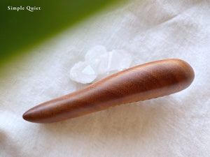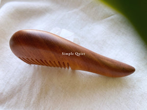 梳頭能使「頭不白」、「髮不落而生」。沒有另外上保護漆的木梳,保留了樹木靈動的氣蘊,溫和而自然的質地最能和身體髮膚互相共鳴。