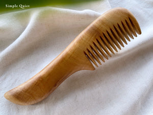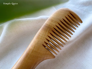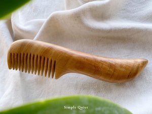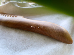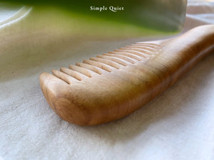 梳頭能使「頭不白」、「髮不落而生」。沒有另外上保護漆的木梳,保留了樹木靈動的氣蘊,溫和而自然的質地最能和身體髮膚互相共鳴。