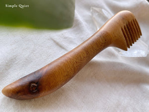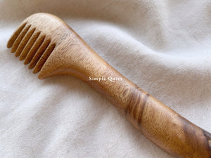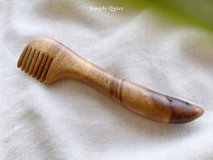 梳頭能使「頭不白」、「髮不落而生」。沒有另外上保護漆的木梳,保留了樹木靈動的氣蘊,溫和而自然的質地最能和身體髮膚互相共鳴。