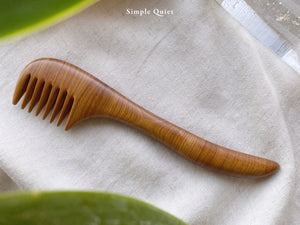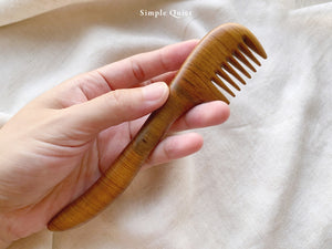 以梳型可以分為有柄梳和無柄梳兩大類。有柄梳的握柄最為合手,可以輕鬆掌握,也很適合以「梳齒」的部分敲打身體以緩解酸痛。但切記不可以用拍打的方式,因為木梳皆以樹木的橫切面去製作,梳齒方向與木頭的肌理平行,較為堅固耐用,但用力拍打有可能使木梳斷裂。