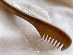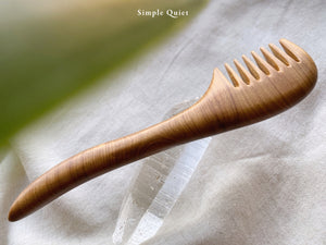 梳頭能使「頭不白」、「髮不落而生」。沒有另外上保護漆的木梳,保留了樹木靈動的氣蘊,溫和而自然的質地最能和身體髮膚互相共鳴。