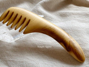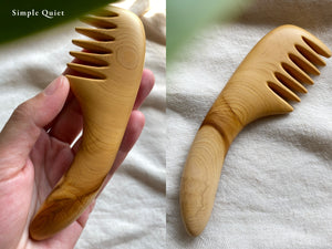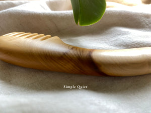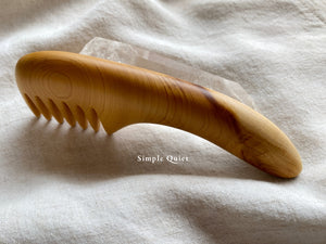 梳頭能使「頭不白」、「髮不落而生」。沒有另外上保護漆的木梳,保留了樹木靈動的氣蘊,溫和而自然的質地最能和身體髮膚互相共鳴。