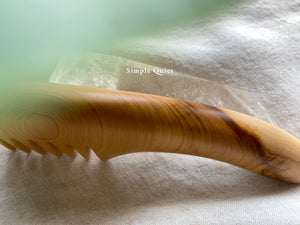 手工木梳難能可貴的是它一體成形,每個轉折處的溫潤如玉,讓手掌與握柄每一次的接觸都像是一種溫柔安撫。而木材特有的靈氣,以及師傅取材的好眼光,讓每一柄梳子的風味/香氣也各異。余光中先生曾有詩云:「且留清香在絕頂」,便是在稱讚這手工木梳。