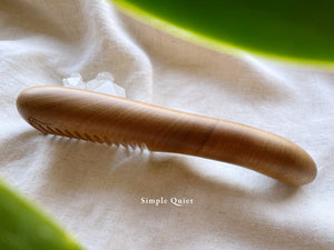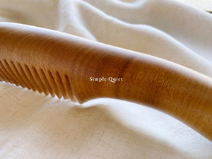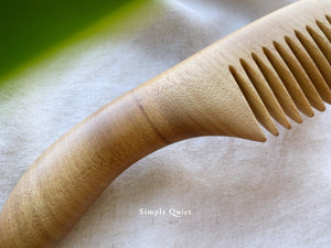 梳頭能使「頭不白」、「髮不落而生」。沒有另外上保護漆的木梳,保留了樹木靈動的氣蘊,溫和而自然的質地最能和身體髮膚互相共鳴。